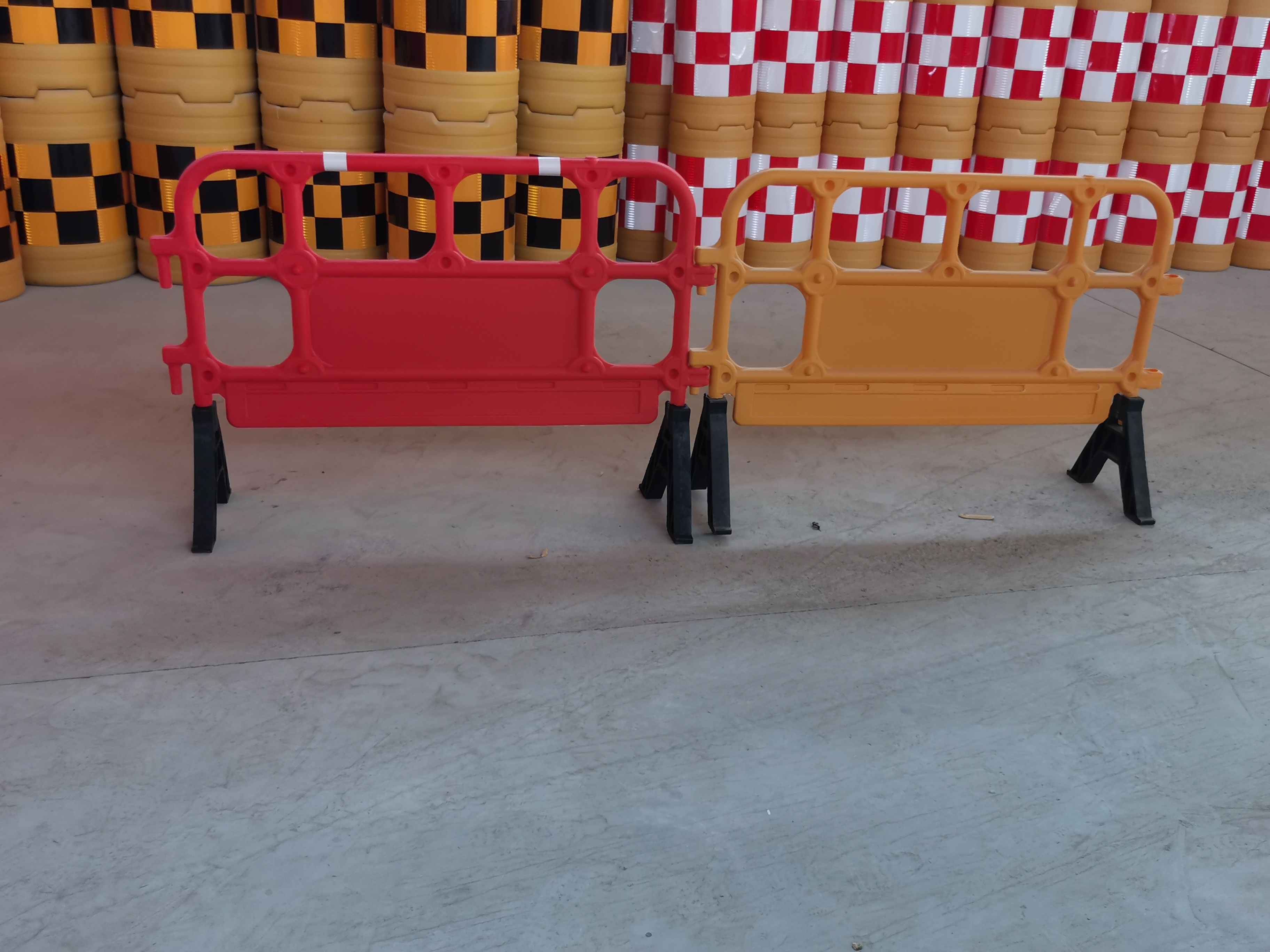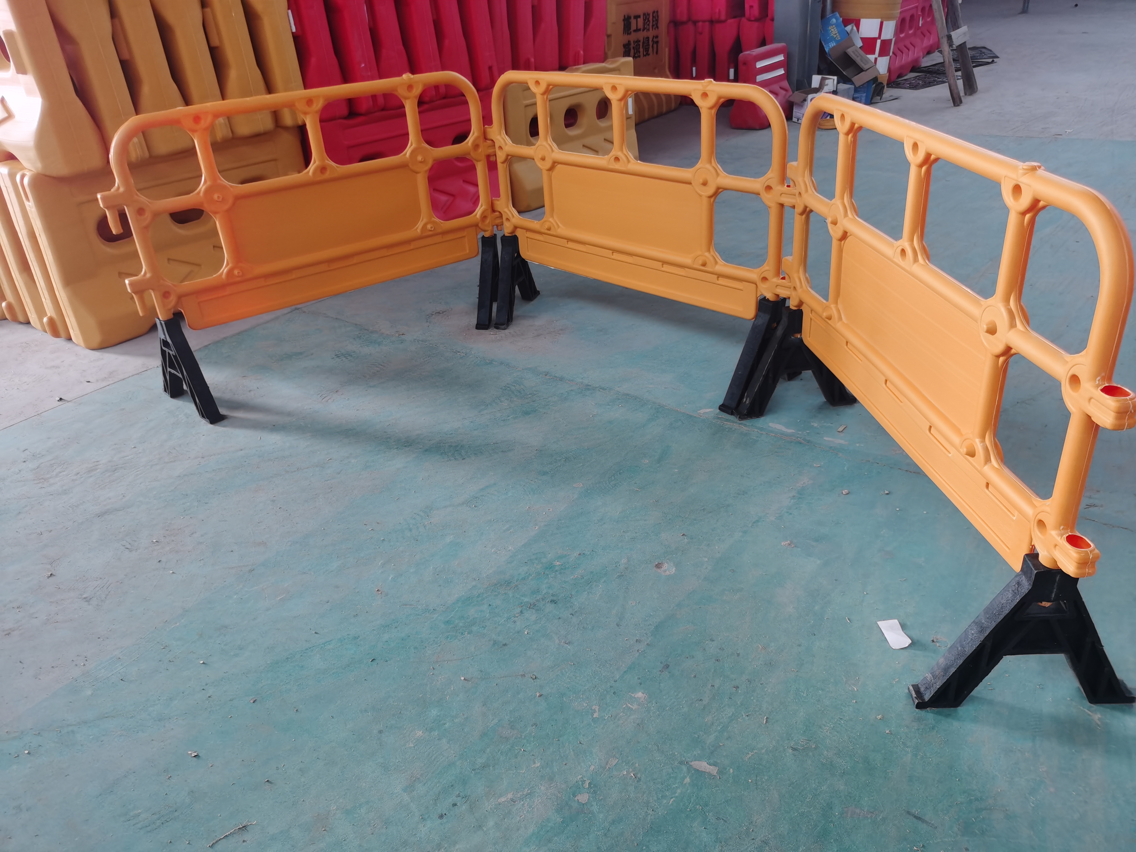 围栏(胶马)采用塑料PE制造,缓冲弹性也跟着加强,能接收强大的冲力,能有效地减少对汽车、路人、及围栏内工作人员的伤害。